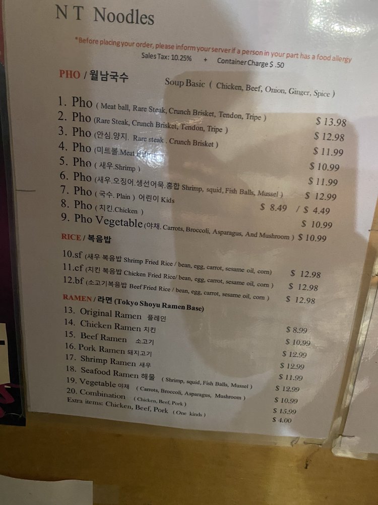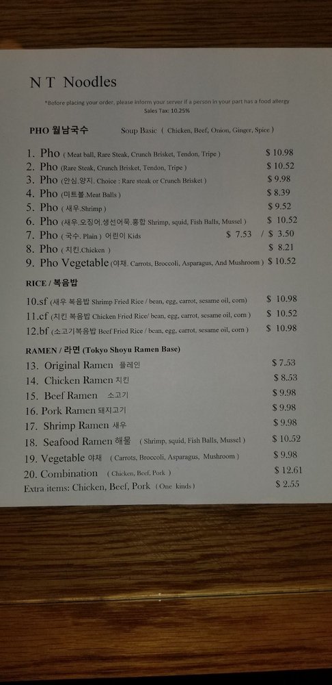 NT Noodles, located in Huntington Park, CA, offers a Vietnamese-Ramen fusion menu with a variety of vegetarian options. The restaurant is known for its exceptional service, clean and casual ambiance, and friendly staff. Customers rave about the delicious Pho, Ramen, and other dishes, praising the flavorful broth and fresh ingredients. The vegetable spicy Ramen and chicken Ramen are highlighted as must-try dishes, with customers loving the bold flavors and generous portions. NT Noodles is praised for its warm and welcoming atmosphere, making diners feel right at home. The restaurant also offers amenities such as free Wi-Fi, TV, and a full bar for a complete dining experience. With positive reviews and a loyal customer base, NT Noodles is a hidden gem not to be missed.